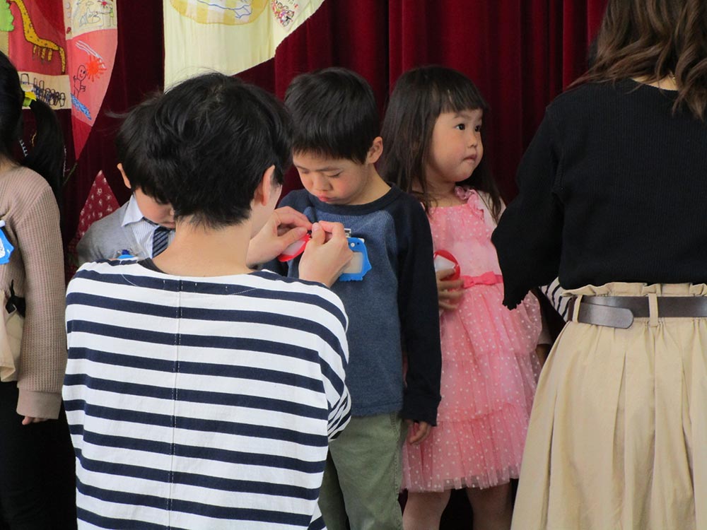 新しく愛隣の仲間になる人達を幼稚園中のみんなで迎えます。 安心して園生活を送れるよう、スライドで幼稚園の生活を紹介したり、おにいさん、おねえさんたちから歌のプレゼントをしたりします。